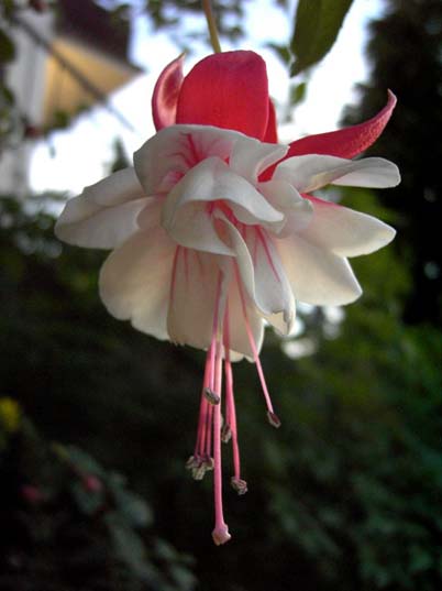 Ich will es insbesondere mal mit den winterharten Sorten versuchen und habe schon den Tom Thumb, die Lady Thumb, die Magellanica Tricolor, Aurea und Riccartonii. Sie sind in diesem Frühjahr / Sommer neu angepflanzt, und ich kann noch nichts über die tatsächliche Winterhärte sagen. Außer bei der Riccartonii, die ist ein Ableger vom Strauch meiner Mutter, und der kommt regelmäßig und wunderschön jedes Jahr wieder.Letzte Woche habe ich dann im Gartencenter eine F. Magellanica erstanden ohne weitere Bezeichnung, und weder in meinem Fuchsienbuch, noch im Internet bin ich mit der Bestimmung weitergekommen. Die neuen Blätter sind auffällig rot, und sie soll rosa / weiße Blüten bekommen. Habt Ihr eine Idee, wer das sein könnte????