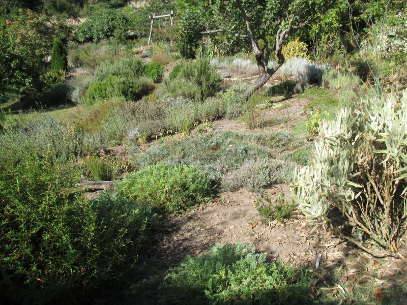 Noch ein Blick zurück über Lavendel und Rosmarin zur imposanten Eiche.