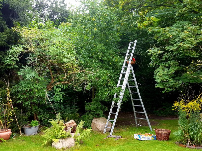 Erstes Durchpflücken bei einigen Apfelbäumen, hier Zuccalmaglio