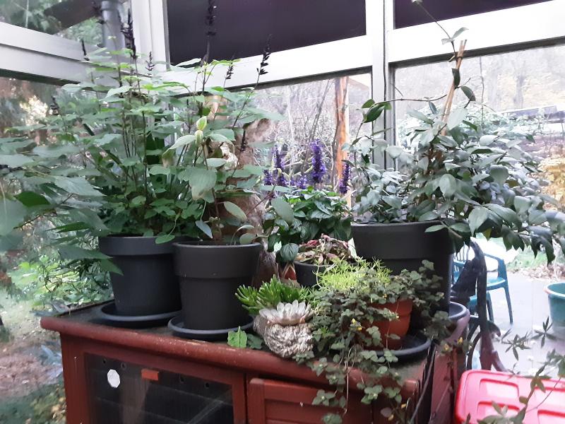 Da der Ziersalbei nicht sicher Winterhart ist steht er nun im kalten Wintergarten