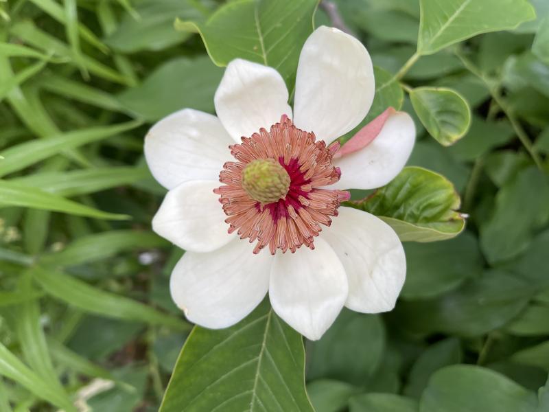 Keine perfekte Blüte, aber immerhin die erste von dieser Magnolie, deren Etikett ins Nirwana entschwunden ist (könnte es M. wieseneri sein?):