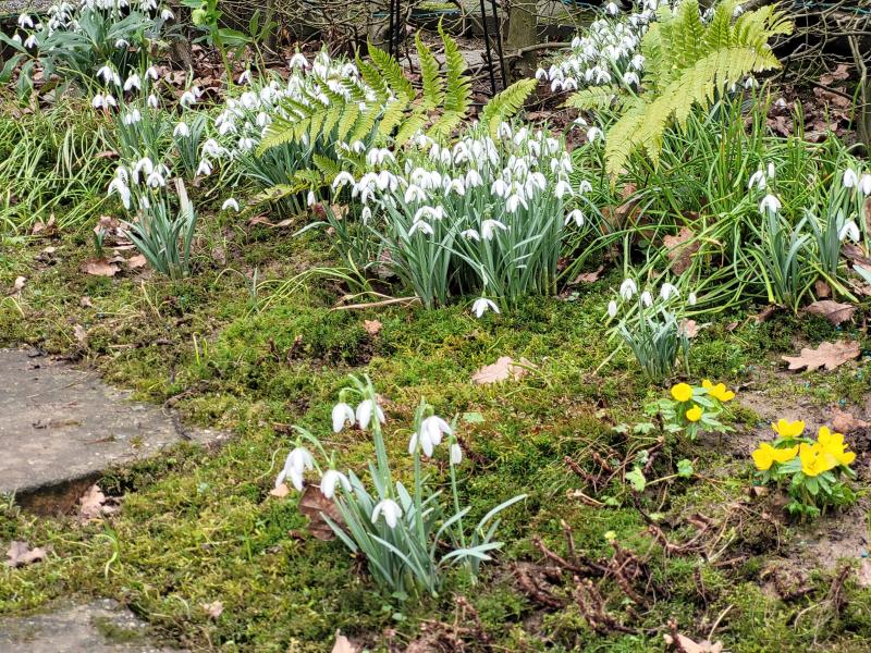 Das Westbeet weiter unten am Haus sieht zurzeit allerdings noch erbärmlich aus. Es ist nass und im Moment noch kaum zu bearbeiten. Es fehlen mir Ideen für das zeitige Frühjahr... vielleicht wären weiße Kissenprimeln unter den Rosen ja eine Idee für den März ???