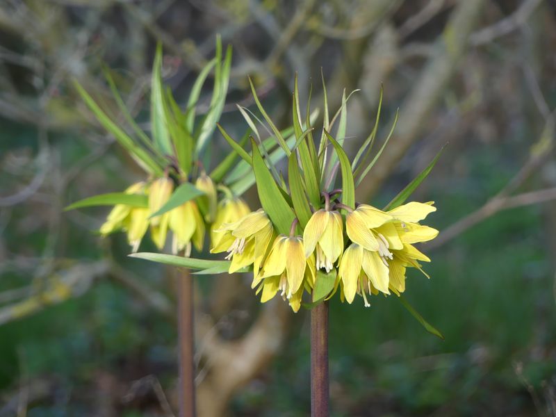 Fritillaria thunbergii hatte ich in den letzten Jahren in unseren beiden Gärten weiter verteilt. Die Gruppe ist in der Gartenmitte gelandet, um endlich einmal bessere Fotoperspektiven zu haben. Bisher musste ich mich für die randlich stehenden Pflanzen tief in Zaun- und Mauerwinkel quetschen.