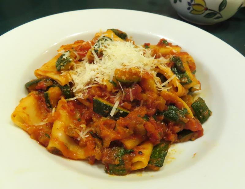 Hier gab es Pacceri mit einer dicken Tomatensauce und Zucchini und viel Parmesan. Die Pacceri könnte man auch füllen, mit Spritzsack, und überbacken - ganz schön aufwendig, es war auch so sehr gut :)