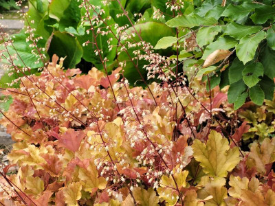 Diverse Heuchera blühen schon sehr üppig und mit hohen Blütenstielen. Auch ihnen behagt das diesjährige Wetter offenbar. :)