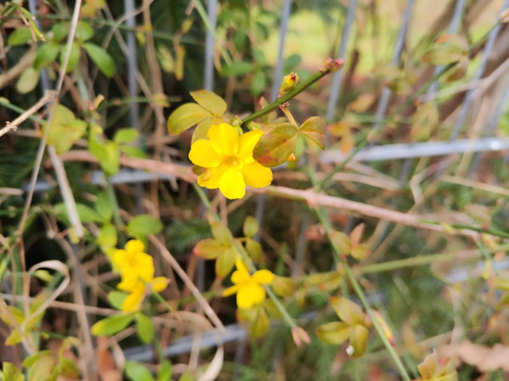Hier blüht schon Jasminum nudiflorum und Prunus subhirtella 'Autumnalis'.