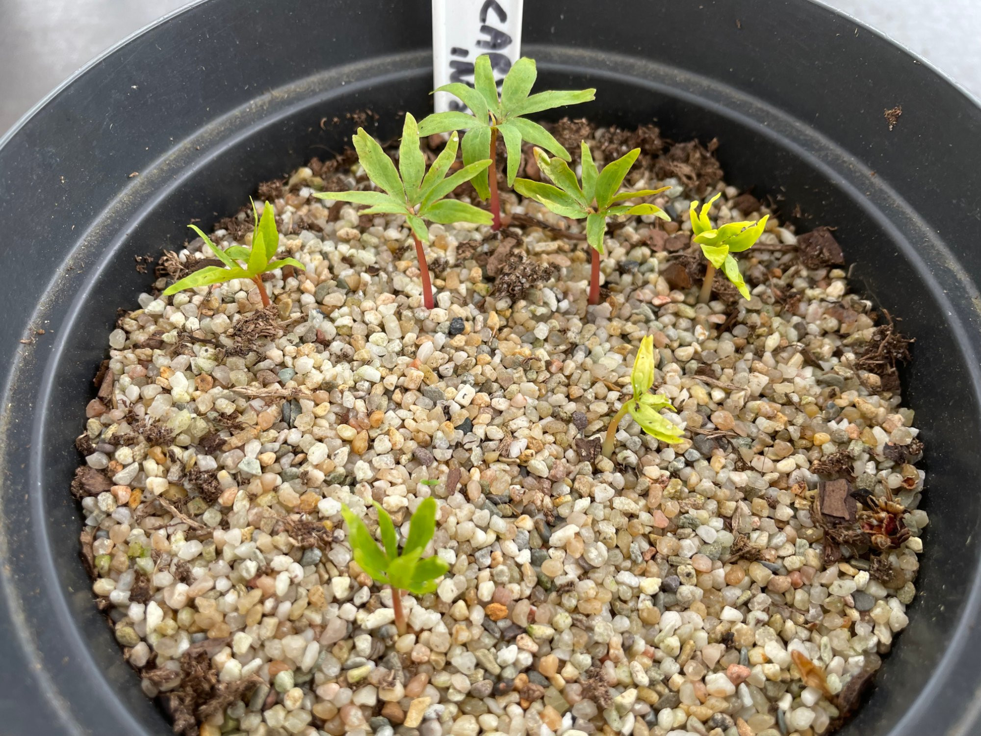 Anmerkung: Samen von Disanthus cercidifolius brauchen erst einige Monate Wärme, danach einige Monate Kälte für oberirdische Keimung Am besten säen in April-Juni für Keimung in das nächstes Jahr.