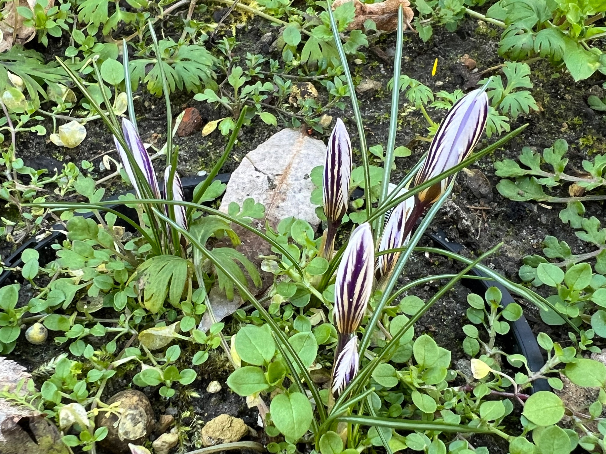 Hans-Herbert, Dein zweiter dürfte kein C. vernus sein. So einer wird regelmäßig namenlos als Botanischer Krokus angeboten (bei mir steht er seit vielen Jahren auch), und wenn ich den richtigen Namen schon irgendwann mal gewußt haben sollte, so habe ich ihn wieder vergessen