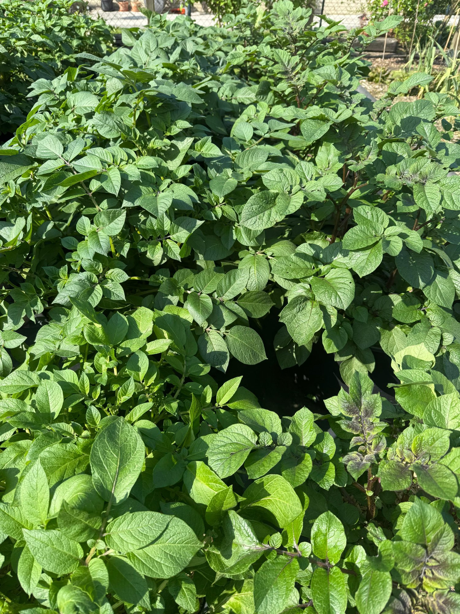 Die Kartoffeln fangen demnächst an zu blühen. Also Annabelle nicht, die hat 2018 das einzige mal in über 10 Jahren geblüht. Sie wirft immer die Knospen ab, bevor sie überhaupt richtig entwickelt sind. Werden jetzt schon gelb und fallen dann runter.