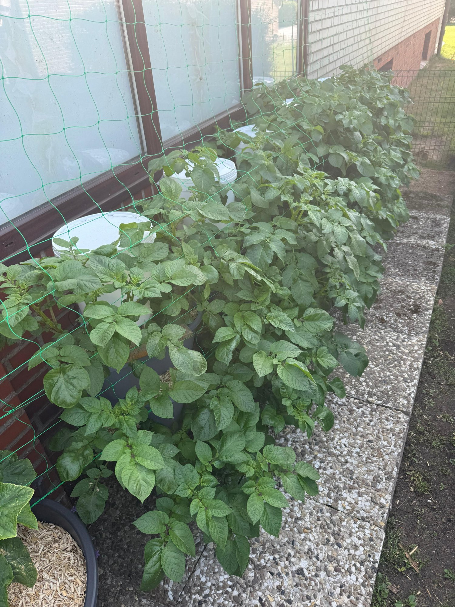 Einige Kartoffeln in den Kübeln hatten allerdings noch mal starke Frostschäden mitte Mai und sind zurück gefroren. Der Mai war bei uns wirklich ungewöhnlich kalt.