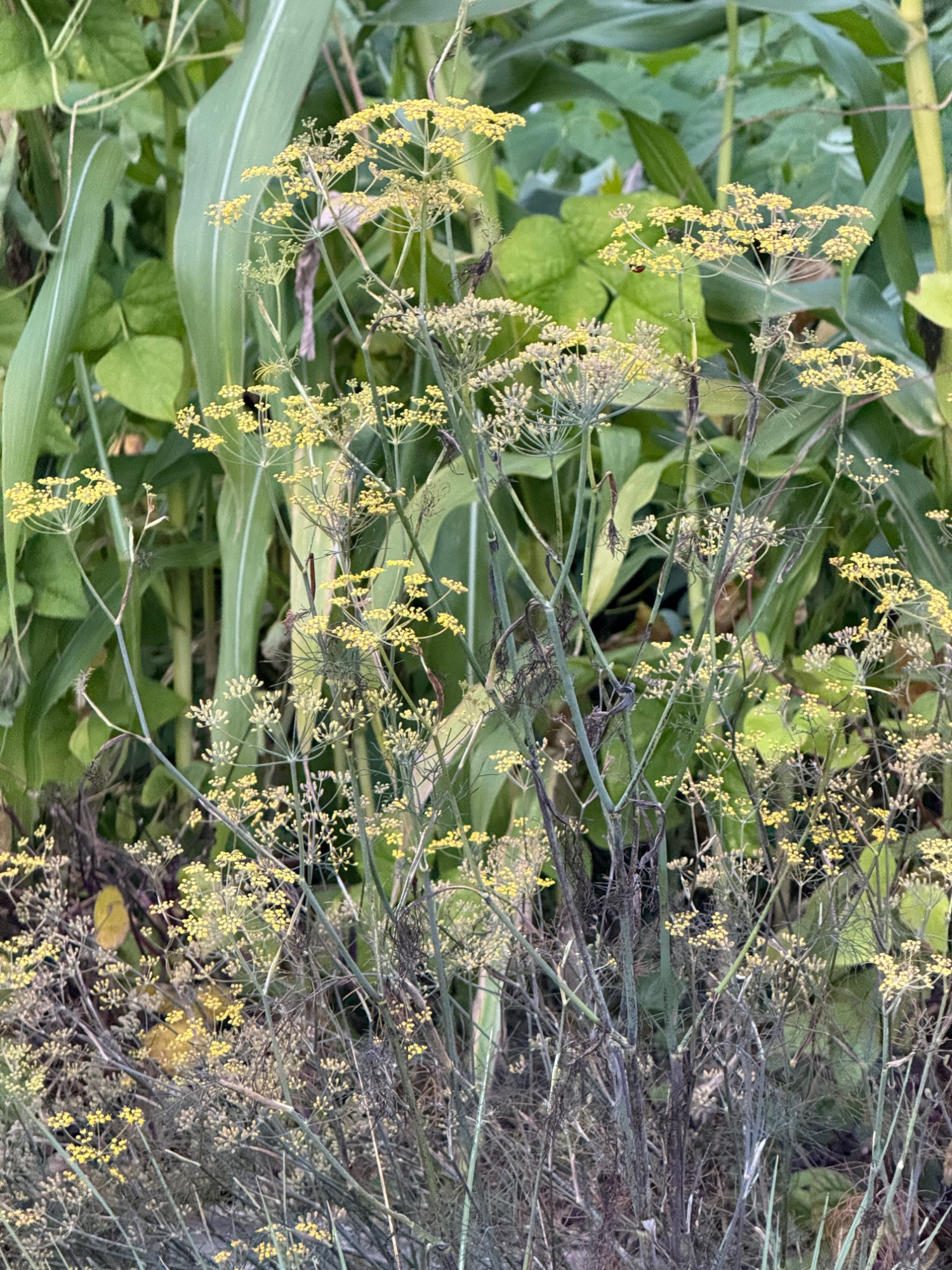 Schoen sieht's bei Euch aus! Hier im Garten gibt's kaum noch etwas ausser den Hibiscus-Bueschen. Ein Lavendel blueht noch mal nach, die Westerland schiebt ein paar Blueten raus, und irgendeine weisse Rose hat auch noch mal etwas produziert. Es gibt noch zwei Hortensienblueten, eine vor und eine hinter dem Haus. Ansonsten hat sich doch noch eine Stockrose gemeldet; die faengt anscheinend gerade an.