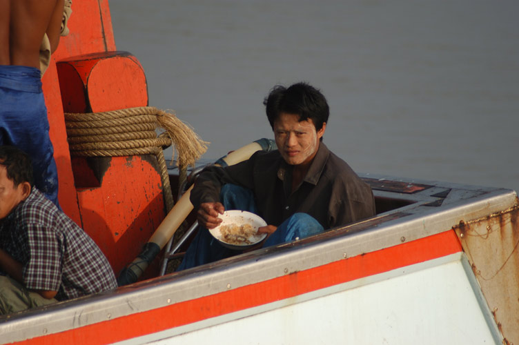 ... dieser Fischer könnte aus Myanmar stammen, denn dort verwenden sie Tanaka (die helle Paste im Gesicht) ...