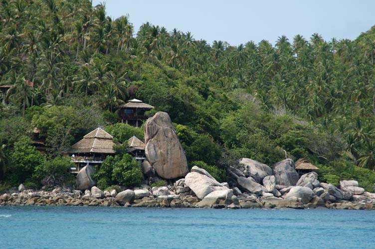... charakteristisch für Koh Tao sind die gigantischen Felsen, man sieht hier auch, wie sich die meisten Bungalows ganz gut verstecken ...