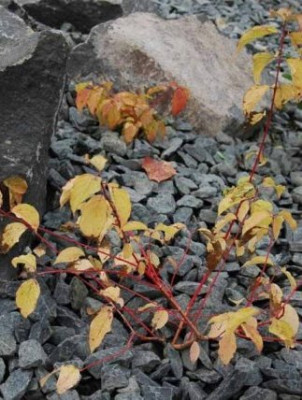 Bei der Neuanlage von Gärten ist es natürlich für Kunden immer etwas schwierig auf solche schönen Kleine zu warten, bis im Garten mal etwas mehr zu sehen ist. Deswegen habe ich auch einige sehr gute und schon größer erhältliche "Standardsorten" gepflanzt. Anbei ein Bild von Cornus alba ‘Sibirica Ruby’, der eine sehr schöne weinrote Herbstfarbe annimmt. Es handelt sich allerdings um mehrere Pflanzen, die von der Seite fotografiert sind, so dass es auf dem Foto etwas üppiger aussieht als bei dem Blick von der Terrasse. Im Vordergrund sieht man noch ein paar Zweige von Cornus 'Midwinter Fire', der sich sehr wüchsig über Ausläufer verbreitet, im Gegensatz zu der ganz ähnlich aussehenden 'Winter Beauty'.Viele Grüße von Iris