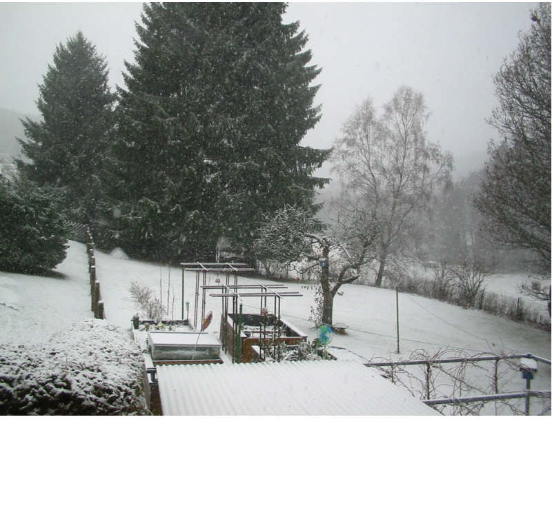 Der neue Schnee taut schon wieder, aktuell rekordverdächtige +5 bis 6°C, trotzdem war in den Nachbargemeinden heute Schneechaos und eine Cessna ist im Schneegestöber abgestürzt, warum auch immer.