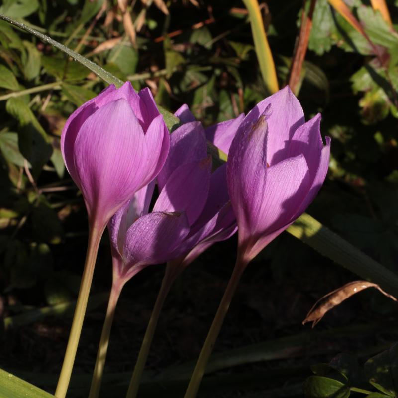 Allerdings ausgerechnet mit Bergenia 'Herbstblüte'. War halt gerade übrig...Gut funktioniert auch Astilbe taquetii. Ab Colchicumblüte sind dier hier hinreichend eingezogen, so daß die Zeitlosen zwischen den fast entlaubten Samenständen der Astilben gut zur Geltung kommen. Und im Gegensatz zu Bergenien- sind Astilbenbestände hier kein bevorzugtes Schneckenhabitat, was wiederum den Colchicum-Blüten zugute kommt.Ich könnte mir auch die Kombinaton mit im Sommer einmalig gestutzten Luzula gut vorstellen.