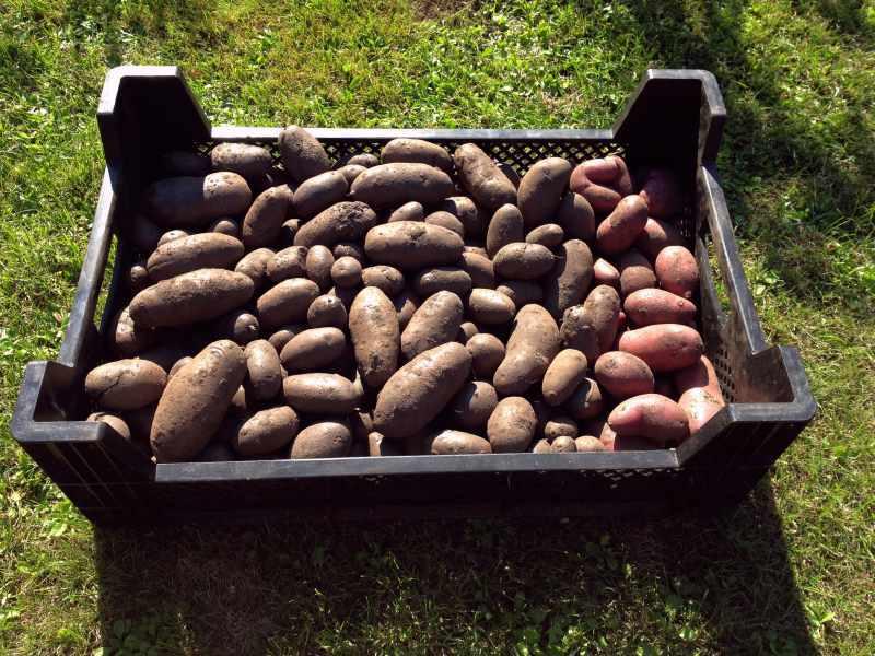 heute habe ich das kartoffelbeet vollends beerntet. richtig viel ist es nicht, aber einige blaue st. galler und etwas rote emmalie sind von den vier kurzen reihen zusammengekommen.