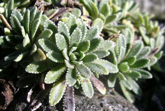der lockere Wuchs, ebbie, kommt dadurch zustande, daß die abgebildeten Rosetten aus einer absolut dichten, kompakten Matte rausgerissen wurden. Diese Matte stand (und steht) schattig (etwas Morgensonne)+ trocken.Nochmal zur Frage von potz:Mich irritiert der etwas lockere Wuchs - kann aber evtl. daher kommen, dass die Pflanze zu schattig steht.Wenn's denn ein Steinbrech sein sollte, meine ich Saxifraga paniculata.Bei einer gelben Blüte, kann es sich dann nur um die Form 'Lutea' handeln (ist aber ein ziemlich blasses Gelb).