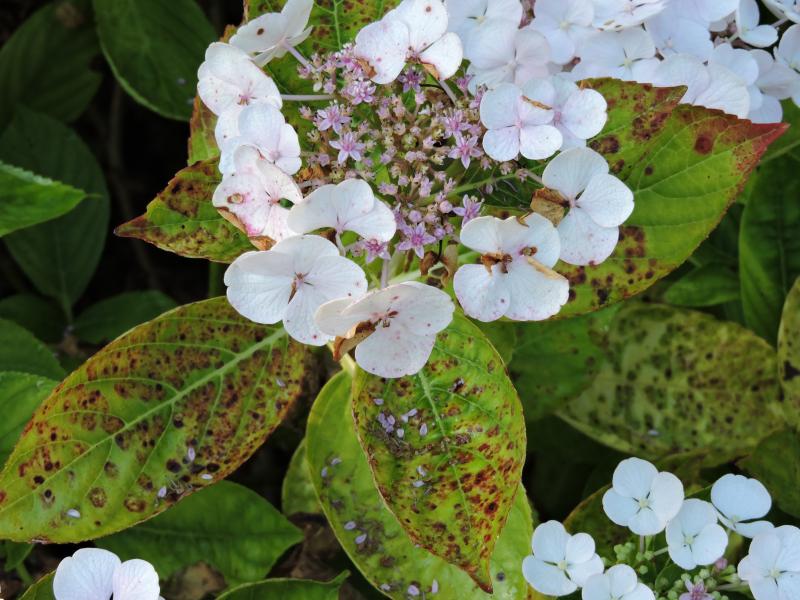 Eigentlich treten diese Blattfleckenpilze gerne dort auf, wo Pflanzen schlecht abtrocknen, wenn es geregnet hat oder beregnet wurde. Allgemein wird eine Standortoptimierung als vorbeugende Maßnahme empfohlen. Also in diesem Fall ein luftiger, bestenfalls lichtschattiger Standort und eine Optimierung des Bodens.Bestimmte Hortensiensorten mögen jedoch anfälliger sein als andere. Ich rätsele hier gerade, um welche Sorte es sich hier handeln könnte.
