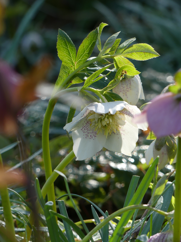 Die Helleborus haben sich auch hier von dem Frost verneigt.