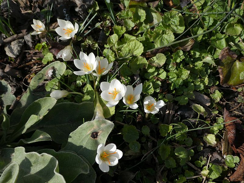 Die weißen Frühlingskrokusse haben sich in der Ecke am Teich selbst angesiedelt. Ich bin ganz froh, dass sie hier ganz unter sich sind, weil der bunte Mix an dieser Stelle zu unruhig wirken würde.