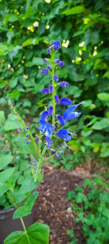 Hier öffnet Salvia cacaliifolia die ersten Blüten. Wie immer schafft mein Handy es nicht, das Blau ordnungsgemäß abzubilden. In Wirklichkeit ist es viel dunkler.