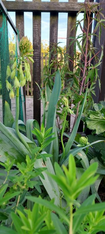 Die hier hatte ich bei Aldi als Galtonia viridiflora gekauft, es dürfte G. candicans sein. Für die Blühsaison darf sie bleiben.