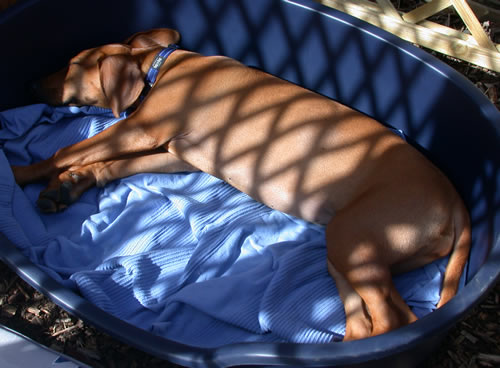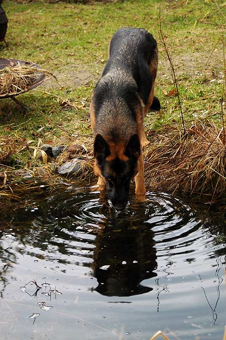 Da sieht man wieder, daß so einer Nellys Vater gewesen muß (der unbekannt ist). Die Mutter war ein Deutsch-Drahthaar (Jagdhund), aber bis auf den Kopf und das "Fließheck" ist Nelly ein Schäferhund.