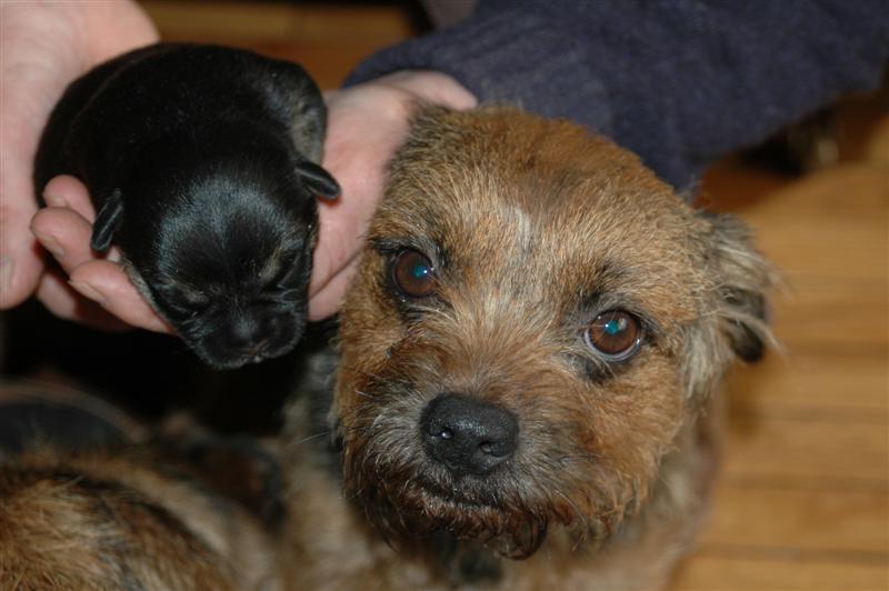 War grad zur Geburtstagsvisite bei einer Gartenfreundin. Ihr Borderterrier hat 3 Junge bekommen.Noch sehen sie aus wie junge Nilpferde!!!!