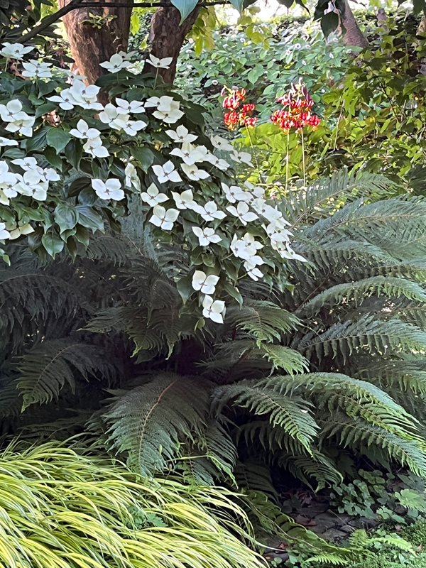 Noch ein Handy Bild von heute Morgen. Der Cornus, der 'Bevis', etwas Hakonechloa und 'Claude Shride'