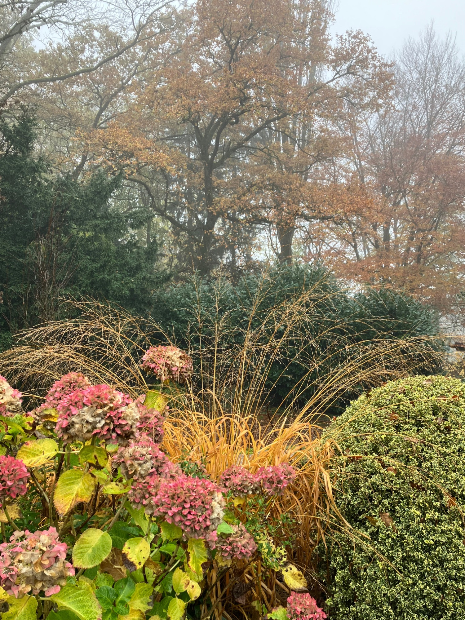 Eine wohltuende Fülle an Stauden, Gehölzen, Sträuchern , alles jetzt im braun-rot-gelben Herbstkleid, die Stauden zum großen Teil auch