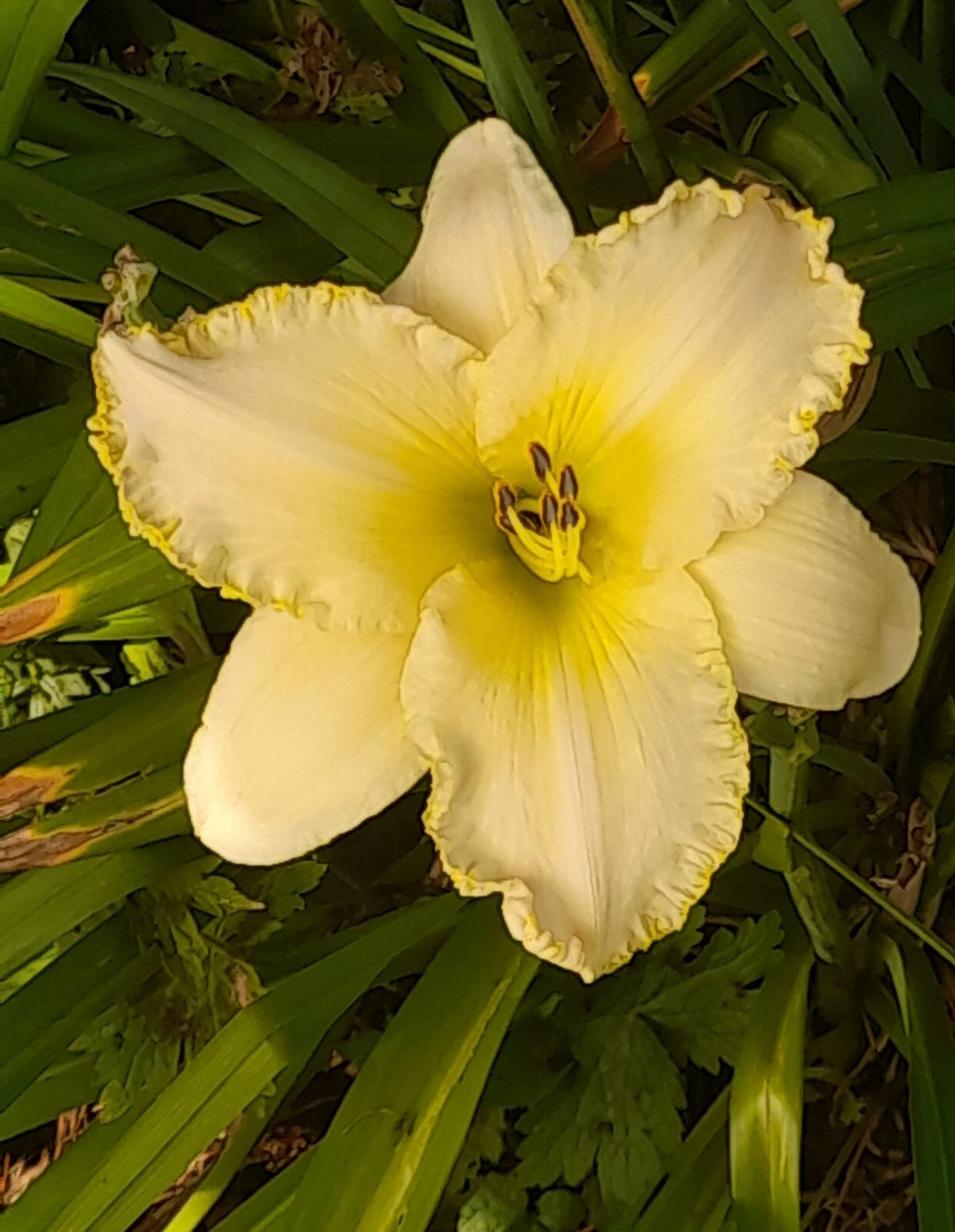..."Hemerocallis Vollmondlicht" bezieht sich auf die Taglilien-Sorte "Moonlit Masquerade", die für ihre cremefarbenen, großblumigen Blüten mit einem dunklen Auge bekannt ist. ...