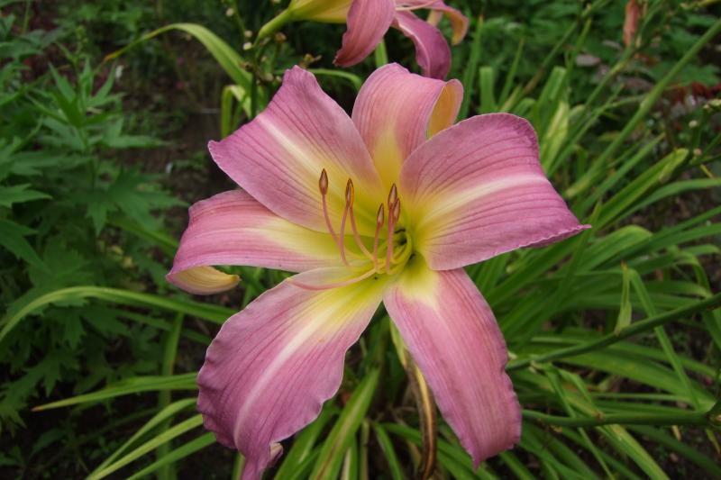 Die kann in der Sonne besser und ist immer gefüllt genauso wie die Mutter Mount Helena. Lang und ziemlich spät blühend.Hier ein sehr typisches Foto.Ebenfalls seit dieser heißen Grabeaktion im Schatten im Topf steht "Berleyer Plappertasche".Callis, kannst du zu der noch mal sagen oder ein typisches Foto spendieren? Weiß nicht so recht, wohin wir sie pflanzen sollen.