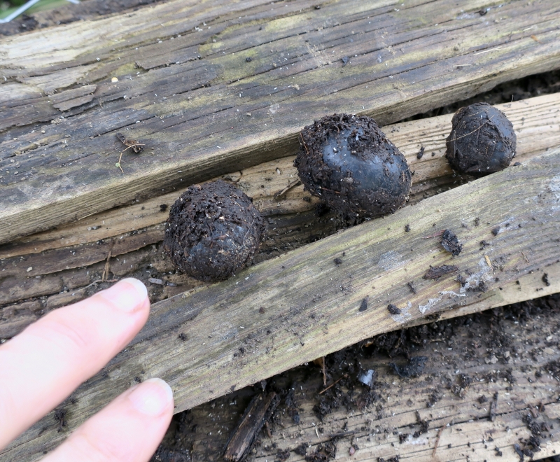Keine Ahnung, ob es hier Dachse gibt. Da müsste ich mal die Nachbarn fragen. Haben die solch fast schwarzen Kot?