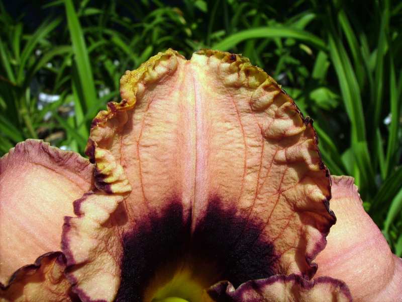 . Ich habe mir die heutige Blüte von Oceans Eleven mal genauer angeschaut. Nicht in der direkten Aufsicht, aber bei richtigem Winkel des einfallenden Sonnenlichts sind metallische Flecken, die sich als Ring durch das Auge ziehen, deutlich sichtbar. Vielleicht werden sie ja noch besser