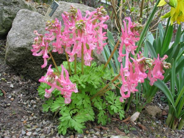 Corydalis maracandica hat im Zentralasienkübel mächtig zugelegt und kommt heuer mit zahlreichen blütentragenden Trieben aus der Erde. Innerhalb von nur wenigen Tagen haben sich die ersten Blüten bereits geöffnet!