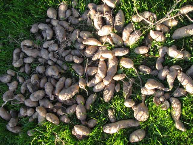 Ich habe heute die vorletzten Kartoffeln geerntet, sehr viele ganz kleine, etliche recht große und dann auch einige äußerst merkwürdig geformte. Woher kommt so was?