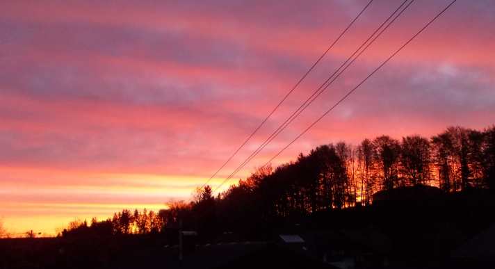 13° um 5h morgens und morgenrot.jetzt stark bewölkt, aber die sonne kommt durch. gestern an die 30° und ich kam auch mit dem gießen der vielen tomatentöpfchen kaum nach! nur nicht schwächeln, Volker