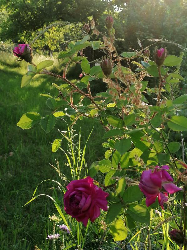Nein im Ernst, ich mag das auch total. Die Wiese ist nun mal da, und da darf man auch was davon sehen. Gerade Alte Rosen passen sehr gut ins Gras. Die Engländer machen uns das auch nach ;)
