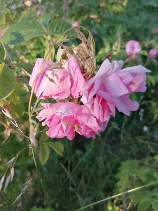 Trotzdem glüht die Alte Rose, welche ich mal als "Pompon Perpetual" gekauft habe. Es könnte aber auch in Richtung Rose du Roi gehen. Keiner weiß es genau. Jedenfalls wenig Stacheln, guter Duft, kaum Pilz und sie hält Dürre aus.