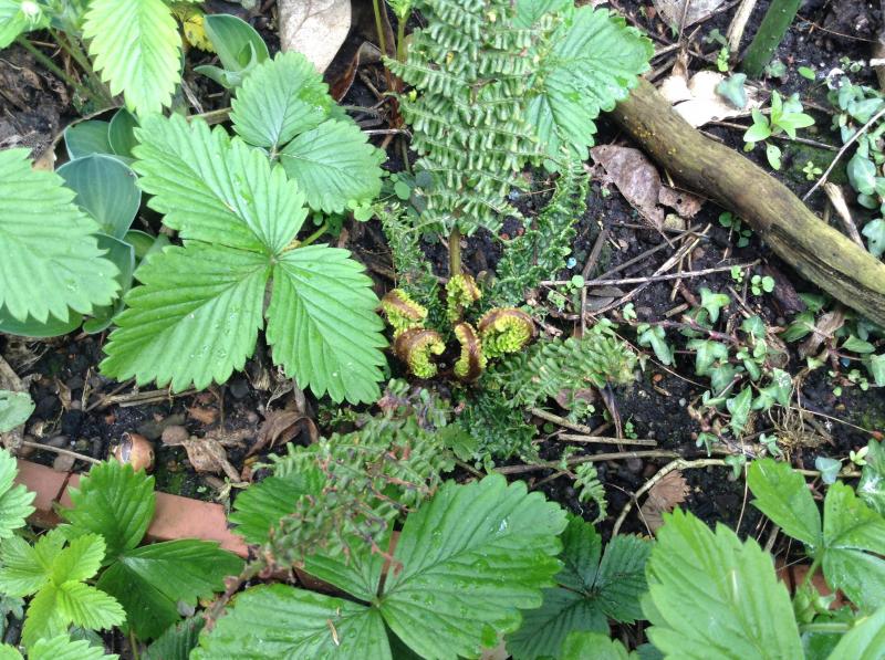 Dryopteris affinis 'Crispa Gracilis Congesta' ('Congesta' ist ein Synonym) ;)Eine Jungpflanzen beim Austrieb im Frühjahr...