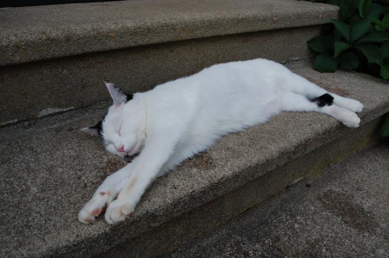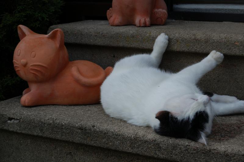 Brave Katzenmama, sie versorgt ja ihre Babies vorbildlich!Nelchen immer noch mit Lageproblemen auf der Treppe: