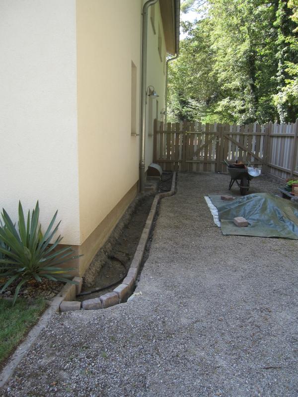 Ich würd an der Hauswand noch eine zusätzliche Feuchtigkeitssperre mit anbringen bevor Ihr die Pflanzerde einfüllt.