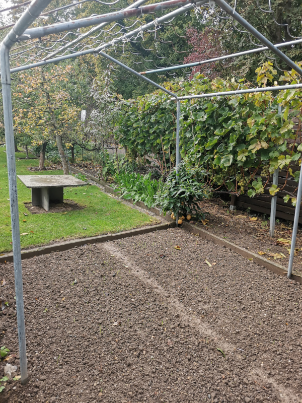 Ich habe mich nach dem Tomatenabräumen wieder dran erinnert und das Knoblauch-Winterzwiebelbeet eben auch so angelegt, auch die Ränder mit dem Spaten hochgepflügt. Eben so, das überschüssiges Wasser ablaufen kann. Ob es das wirklich tut, wird sich noch zeigen müssen. Die 70mm Regen der letzten Tage hat der Boden bis jetzt einfach aufgesaugt, es war einfach noch zu trocken.