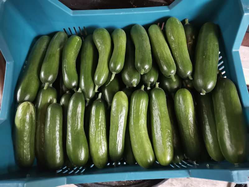 Sieht so ähnlich aus wie die Gurke oben mittig links im Bild. Nur viel extremer. Mit den Anforderungen die Aldi, Lidl, Edeka usw stellen, wäre die Hälfte vom Bild Ausschuss.