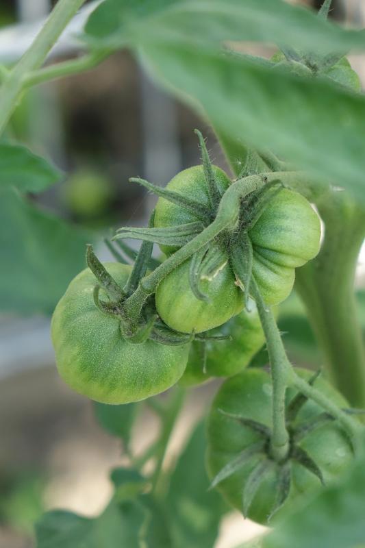 Die drei Tomatenstöcke bei uns, tragen erste kleine "Ballönchen".