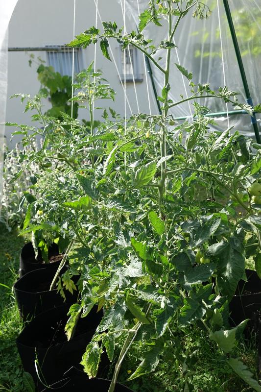 Vivagrande und erster Fruchtansatz hoch überm Boden: der hängt auch mit der Anzucht zusammen, ich finde es kein Fehler wenn die ersten Früchte etwas mehr Abstand und Platz zum Boden haben. Da krabbeln weniger Pilzkrankheiten hoch, und gerade im Bioanbau, wo die Sorten herkommen, sollte man auf sowas achten.