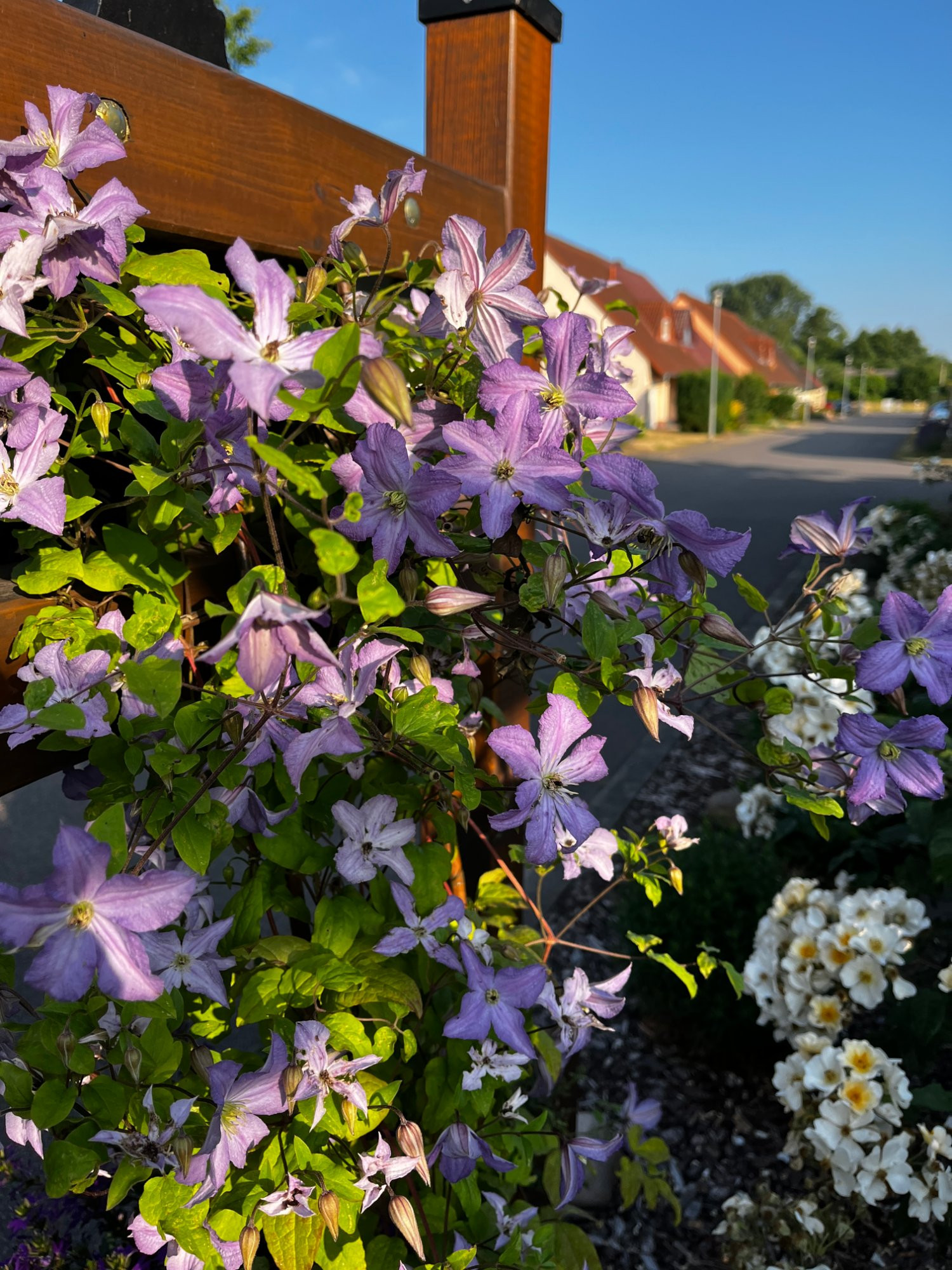 Sie ist sofort durchgestartet und hat sich den Flieder Palibin als zusätzliche Rankhilfe ausgesucht.