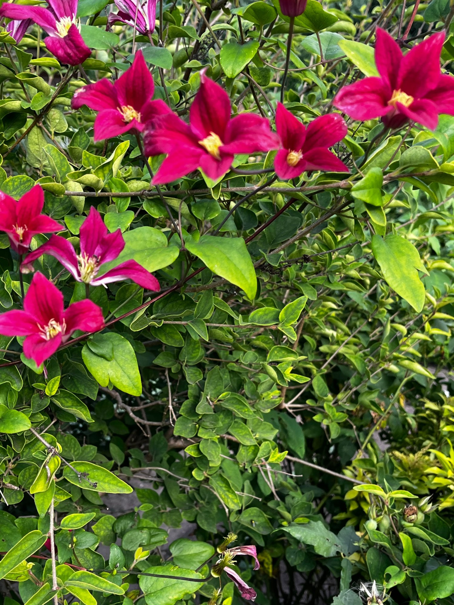 Clematis div. 'Strawberry Fields'.