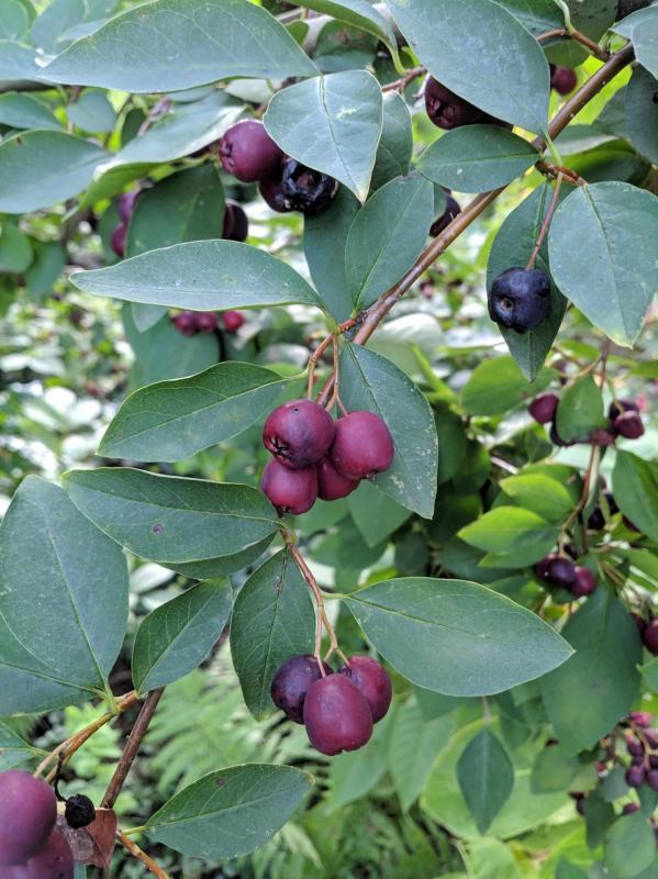 Im Frühjahr sind die Zweige mit unzählichen kleinen weißen Blüten besetzt, jetzt hängen die Zweige voll mit Früchen. Und ich frage mich immer ob man die essen kann...